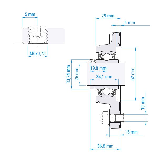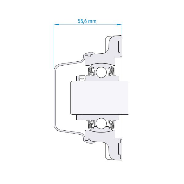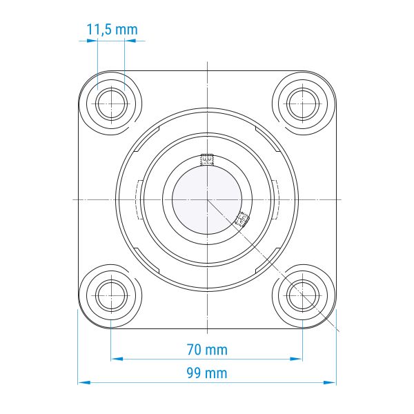 Kompakte Flanschlagereinheit mit vier Befestigungsbohrungen für eine stabile, flächenbündige Montage.
