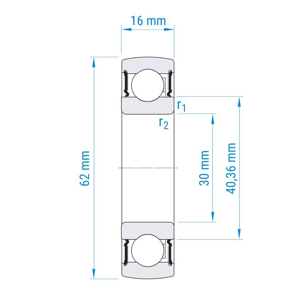 ø Welle: 30 mm | ø Außen: 62 mm | Breite: 16 mm | Standard-Innenring | Wellenbefestigung durch feste Passung | Lager aus Wälzlagerstahl