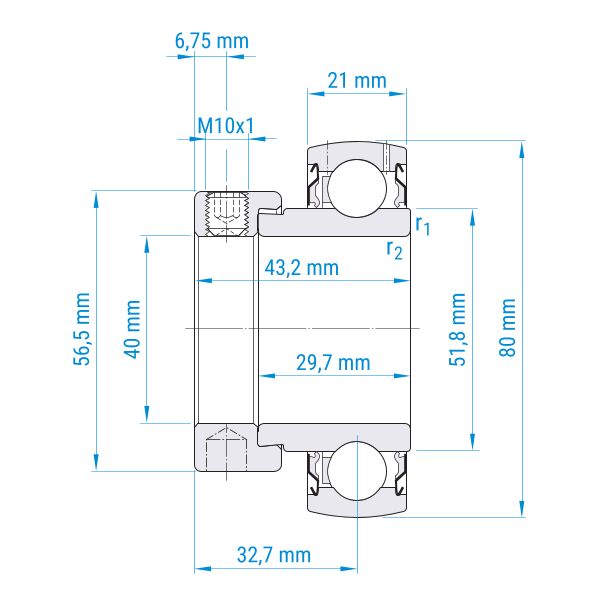 ø Welle: 40 mm | ø Außen: 80 mm | Breite: 43,2 mm | einseitig verbreiterter Innenring | Wellenbefestigung mit Exzenterring | Lager aus Wälzlagerstahl