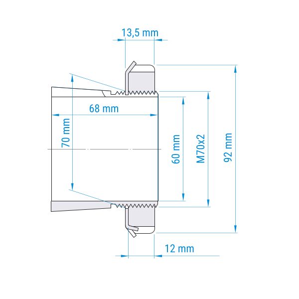 ø Welle: 60 mm | ø Wellenmutter: 92 mm | ø Gewinde: 70 mm | Gesamtbreite: 68 mm | Breite Wellenmutter: 13,5 mm