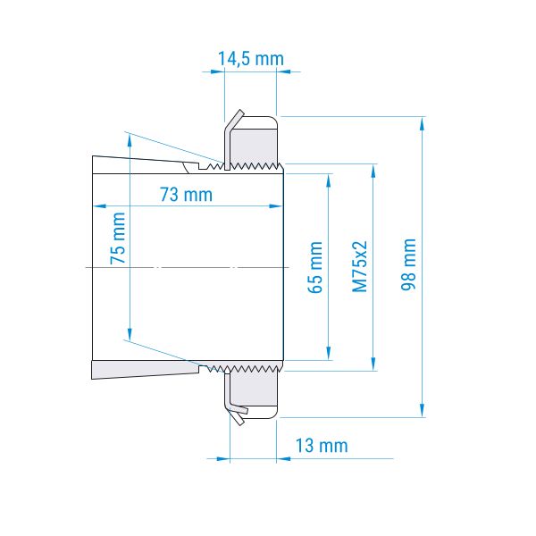 ø Welle: 65 mm | ø Wellenmutter: 98 mm | ø Gewinde: 75 mm | Gesamtbreite: 73 mm | Breite Wellenmutter: 14,5 mm