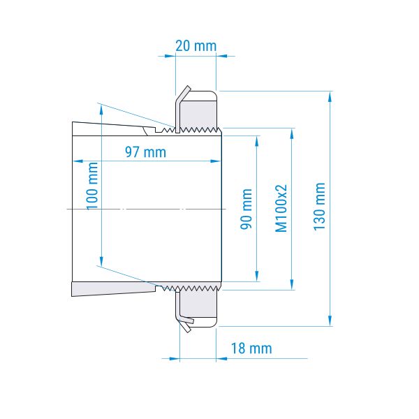 ø Welle: 90 mm | ø Wellenmutter: 130 mm | ø Gewinde: 100 mm | Gesamtbreite: 97 mm | Breite Wellenmutter: 20 mm