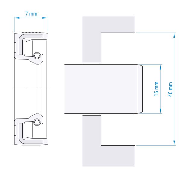 ø Innen: 15 mm | ø Außen: 40 mm | Breite: 7 mm | Bauform: HMS5 (ohne Schutzlippe) | Material: FKM