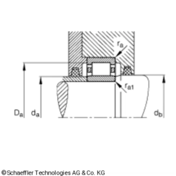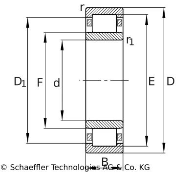Hauptabmessungen nach DIN 5412-1, Loslager, zerlegbar, mit Käfig