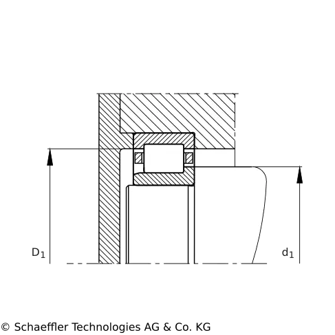 Hauptabmessungen nach DIN 5412-1, Stützlager, zerlegbar, mit Käfig