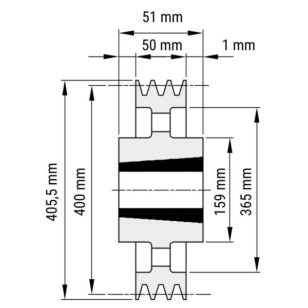 Diese Ausführung bietet hohe Flexibilität für Sonderwellen, Einzelstücke oder Prototypen. Für Serienanwendungen mit genormten Wellen empfiehlt sich der Einsatz von Keilriemenscheiben mit Einsatz für Taperbuchsen.